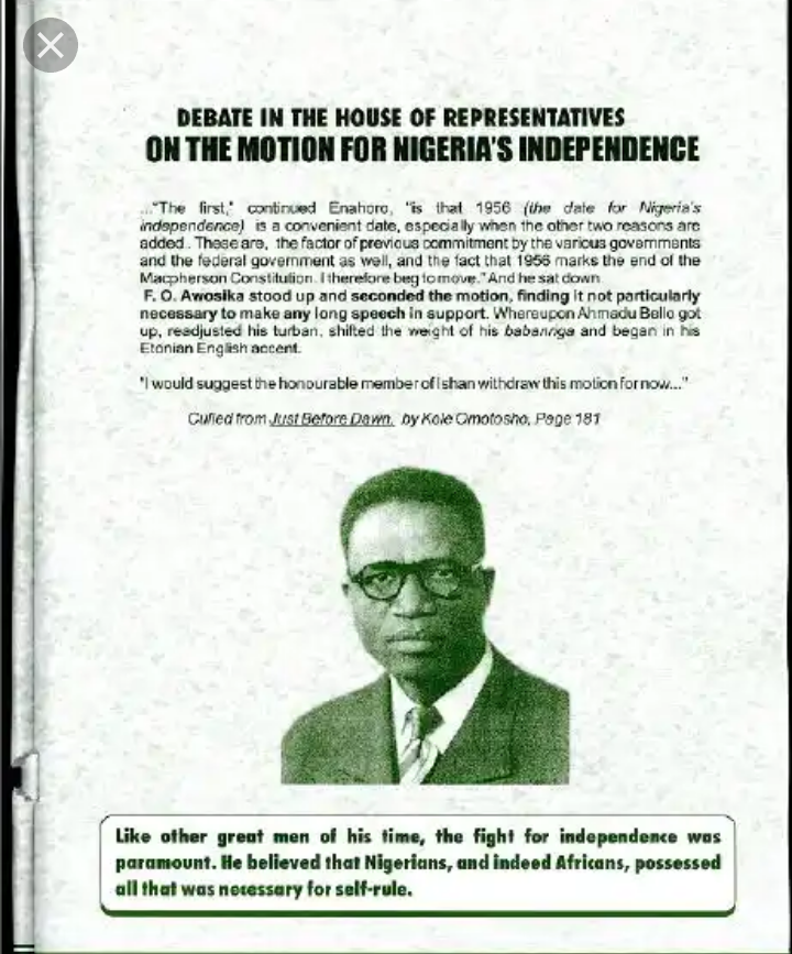 1. In 1956, when Sir Anthony Enahoro moved the motion for Independence of Nigeria in Lagos, the northern Leaders opposed the motion, their reasons were that: